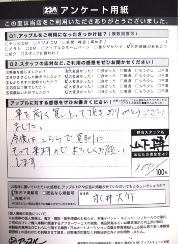 お車のご相談・ 査定だけでもOK! カンタン 入力 30秒 アップルがブランド買取始めました! お電話でも受付中! 受付時間10:00 ~ 19:00 0564-25-8118 お車のご相談・ 査定だけでもOK! カンタン 入力 30秒 アップルがブランド買取始めました! お電話でも受付中! 受付時間10:00 ~ 19:00 0564-25-8118 アップルがブランド買取始めました! お電話でも受付中! 受付時間10:00 ~ 19:00 0564-25-8118 店舗情報 在庫車 スタッフ紹介 ブログ お客様の声 キャンペーン お得 無料査定 click お客様の声 ご記入日: 2012/01/28 永井 大介様 車を高く買いとって頂きありがとうございました。今後はこちらで買取にもって来ますのでよろしくお願いします。 前へ 次へ お客様の声一覧を見る
