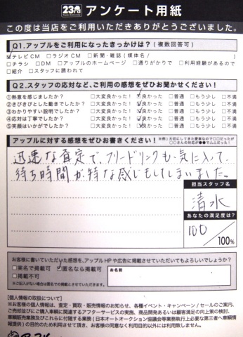 お車のご相談・ 査定だけでもOK! カンタン 入力 30秒 アップルがブランド買取始めました! お電話でも受付中! 受付時間10:00 ~ 19:00 0564-25-8118 お車のご相談・ 査定だけでもOK! カンタン 入力 30秒 アップルがブランド買取始めました! お電話でも受付中! 受付時間10:00 ~ 19:00 0564-25-8118 アップルがブランド買取始めました! お電話でも受付中! 受付時間10:00 ~ 19:00 0564-25-8118 店舗情報 在庫車 スタッフ紹介 ブログ お客様の声 キャンペーン お得 無料査定 click お客様の声 ご記入日: 2012/07/06 無記名様 迅速な査定で、フリードリンクも気に入って、待ち時間が特な感じもしてしまいました。 前へ 次へ お客様の声一覧を見る
