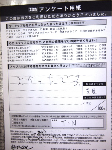 お車のご相談・ 査定だけでもOK! カンタン 入力 30秒 アップルがブランド買取始めました! お電話でも受付中! 受付時間10:00 ~ 19:00 0564-25-8118 お車のご相談・ 査定だけでもOK! カンタン 入力 30秒 アップルがブランド買取始めました! お電話でも受付中! 受付時間10:00 ~ 19:00 0564-25-8118 アップルがブランド買取始めました! お電話でも受付中! 受付時間10:00 ~ 19:00 0564-25-8118 店舗情報 在庫車 スタッフ紹介 ブログ お客様の声 キャンペーン お得 無料査定 click お客様の声 ご記入日: 2012/01/31 T.N様 よかったです。 前へ 次へ お客様の声一覧を見る