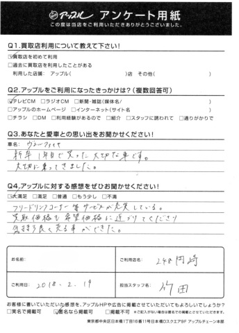 お車のご相談・ 査定だけでもOK! カンタン 入力 30秒 アップルがブランド買取始めました! お電話でも受付中! 受付時間10:00 ~ 19:00 0564-25-8118 お車のご相談・ 査定だけでもOK! カンタン 入力 30秒 アップルがブランド買取始めました! お電話でも受付中! 受付時間10:00 ~ 19:00 0564-25-8118 アップルがブランド買取始めました! お電話でも受付中! 受付時間10:00 ~ 19:00 0564-25-8118 店舗情報 在庫車 スタッフ紹介 ブログ お客様の声 キャンペーン お得 無料査定 click お客様の声 ご記入日: 2018/02/19 岡崎市 匿名希望様 Q1.愛車との思い出をお聞かせください!・・・新卒1年目で買った大切な車です。大切に乗ってきました。Q2.アップルに対する感想をお聞かせください!・・・フリードリンクコーナー等サービスが充実している。買取価格も希望価格に近づけてくださり気持ち良く売る事ができた。担当スタッフ:竹田 前へ 次へ お客様の声一覧を見る