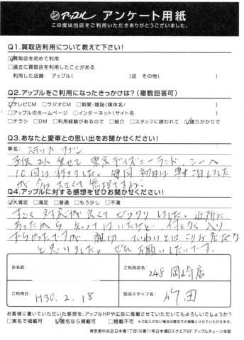 Q2.アップルに対する感想をお聞かせください!・・・すごく対応が良くてビックリしました。近所にあったから知ってはいたけど、何となく入りづらかったですが親切、ていねいとはこのお店だなと思いました。ぜひお願いしたいです。