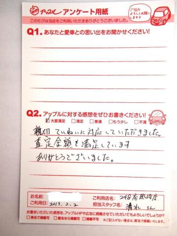 お車のご相談・ 査定だけでもOK! カンタン 入力 30秒 アップルがブランド買取始めました! お電話でも受付中! 受付時間10:00 ~ 19:00 0564-25-8118 お車のご相談・ 査定だけでもOK! カンタン 入力 30秒 アップルがブランド買取始めました! お電話でも受付中! 受付時間10:00 ~ 19:00 0564-25-8118 アップルがブランド買取始めました! お電話でも受付中! 受付時間10:00 ~ 19:00 0564-25-8118 店舗情報 在庫車 スタッフ紹介 ブログ お客様の声 キャンペーン お得 無料査定 click お客様の声 ご記入日: 2013/02/02 S.T様 愛車との思い出・・・特になしアップルへの感想・・・親切ていねいに対応していただきました。査定金額も満足しています。ありがとうございました。担当者より・・・お父様の大切なおクルマをありがとうございました!!!お近くなので、またいつでもご来店ください♪ 前へ 次へ お客様の声一覧を見る