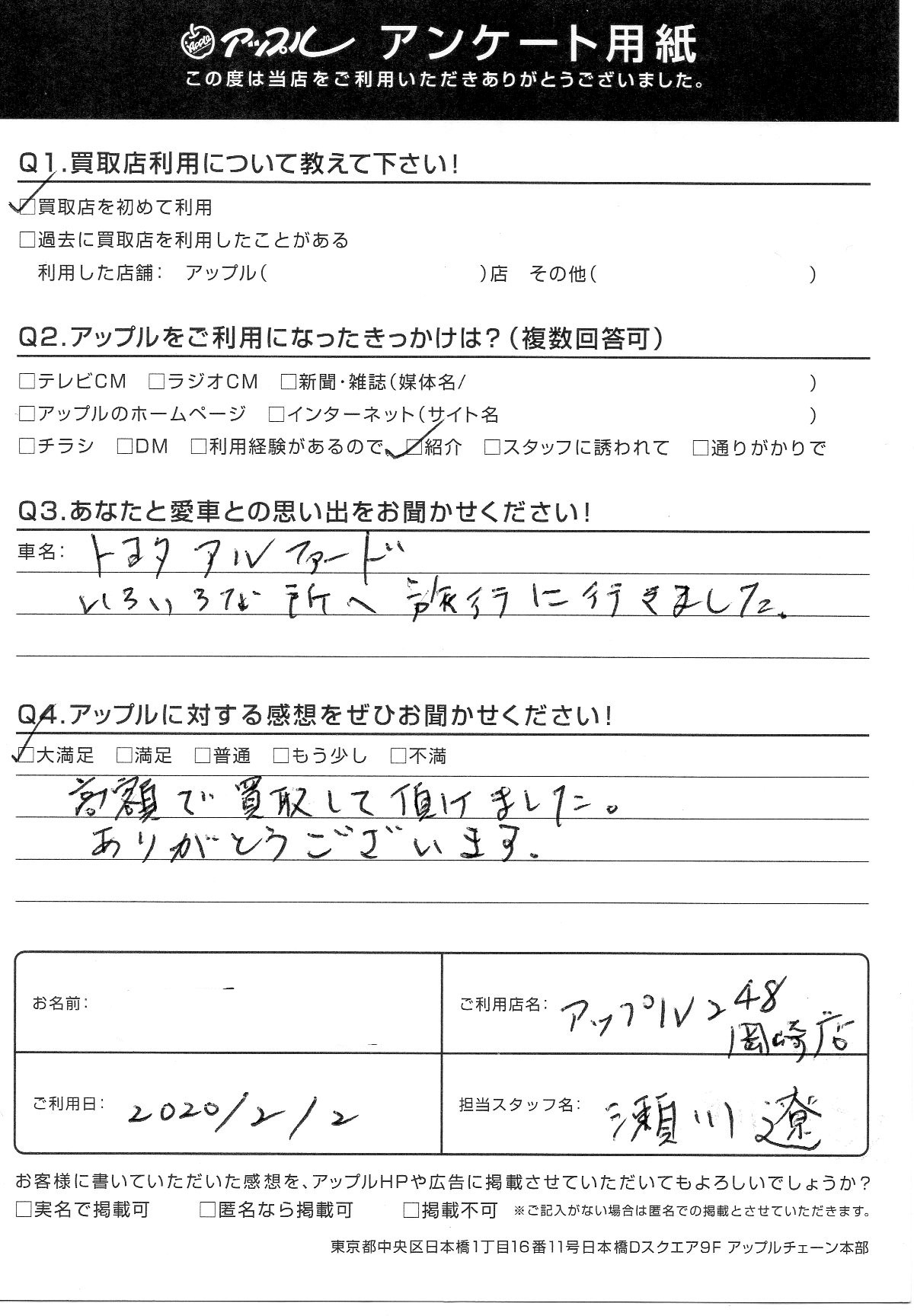 お車のご相談・ 査定だけでもOK! カンタン 入力 30秒 アップルがブランド買取始めました! お電話でも受付中! 受付時間10:00 ~ 19:00 0564-25-8118 お車のご相談・ 査定だけでもOK! カンタン 入力 30秒 アップルがブランド買取始めました! お電話でも受付中! 受付時間10:00 ~ 19:00 0564-25-8118 アップルがブランド買取始めました! お電話でも受付中! 受付時間10:00 ~ 19:00 0564-25-8118 店舗情報 在庫車 スタッフ紹介 ブログ お客様の声 キャンペーン お得 無料査定 click お客様の声 ご記入日: 2020/02/02 匿名希望様 車名:トヨタ アルファード(H27年1月~のHYBRID含む) 高額で買取して頂けました。ありがとうございます。 前へ 次へ お客様の声一覧を見る