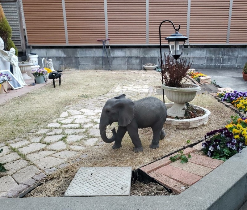 本日ブログは自宅の小さなお庭に仲間入りしたゾウさんのオブジェのご紹介です!