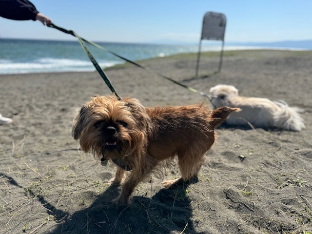 最近、暖かくなって来たのでワンコ達を近所の海で散歩するのがマイブームです!砂だらけになりますが