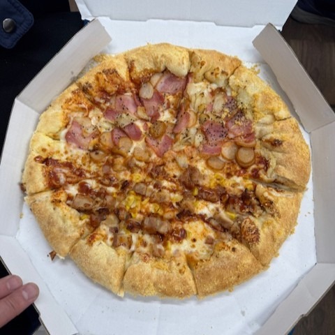 写真では伝わりづらいですがま~大きいピザで、耳にもたっぷりチーズが入っています。
