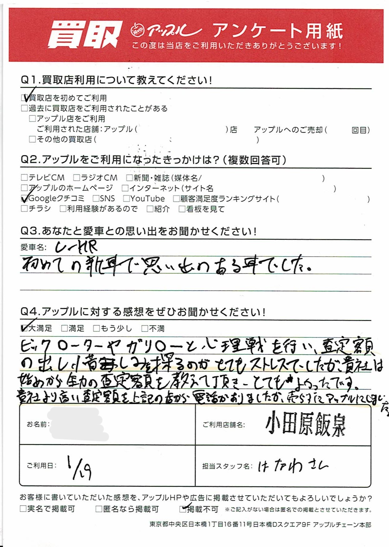 貴社は始めから全力の査定額を教えて頂き、とてもよかったです。
