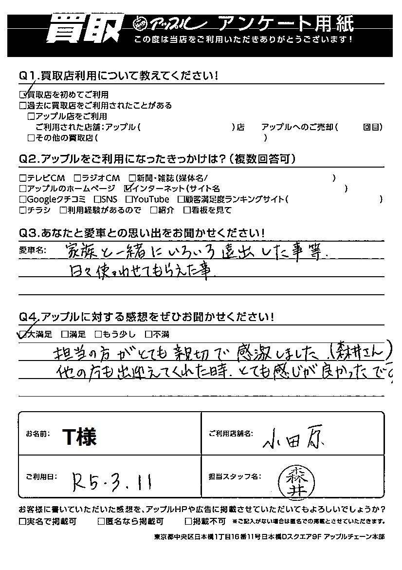 ご利用日:R5年3月11日 担当:森井