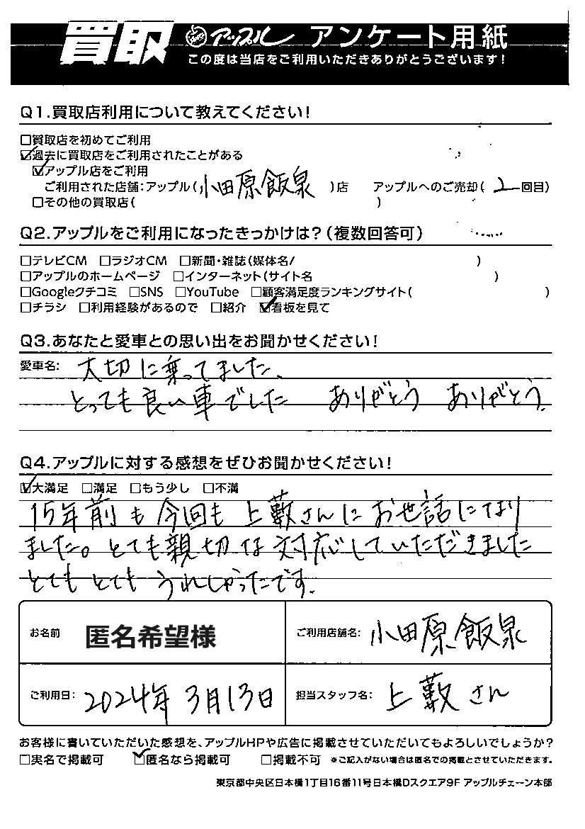 ご利用日:2024年3月13日 担当:上藪