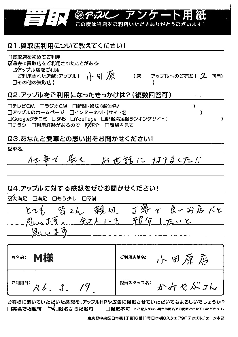 ご利用日:R6年3月19日 担当:上藪