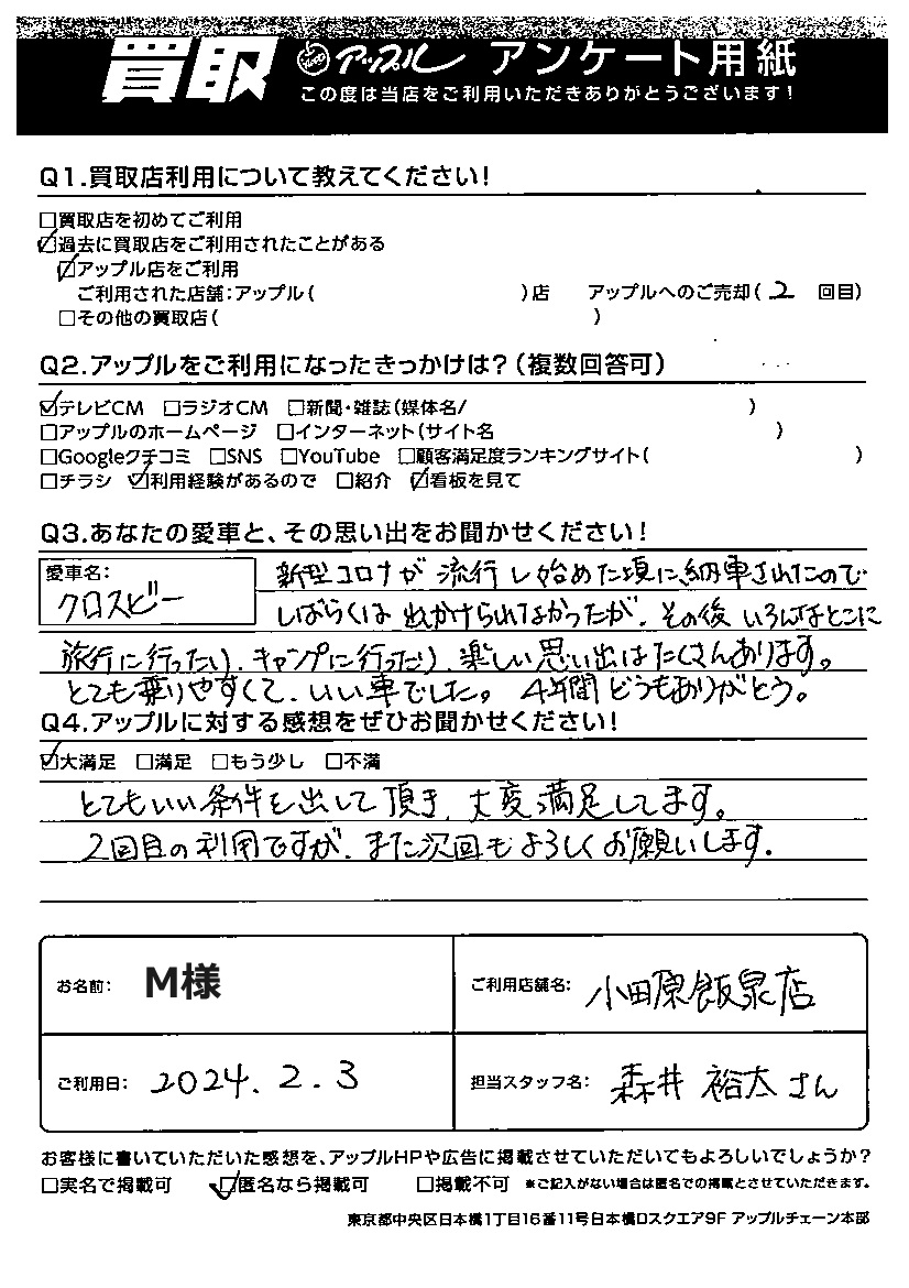 とても乗りやすくていい車でした。4年間どうもありがとう。