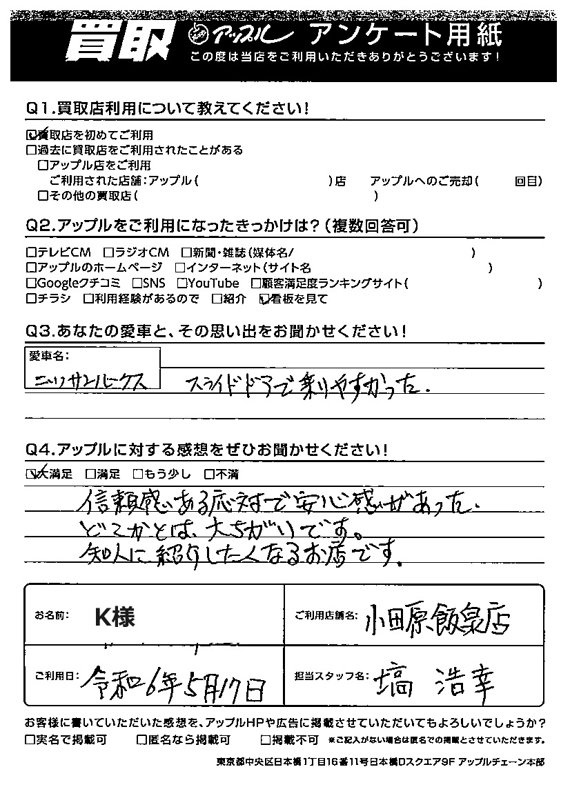 ご利用日:令和6年5月17日 担当:塙 浩幸