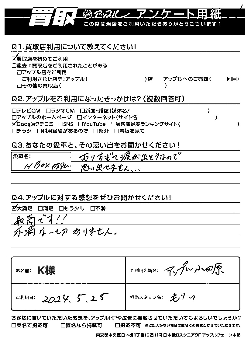 ご利用日:2024年5月25日 担当:森井