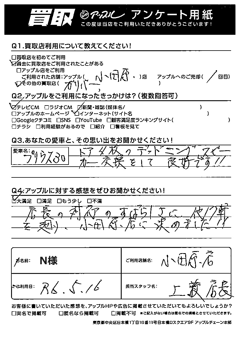 N様 車名:トヨタ プリウス(2023年3月~のPHVを含む)