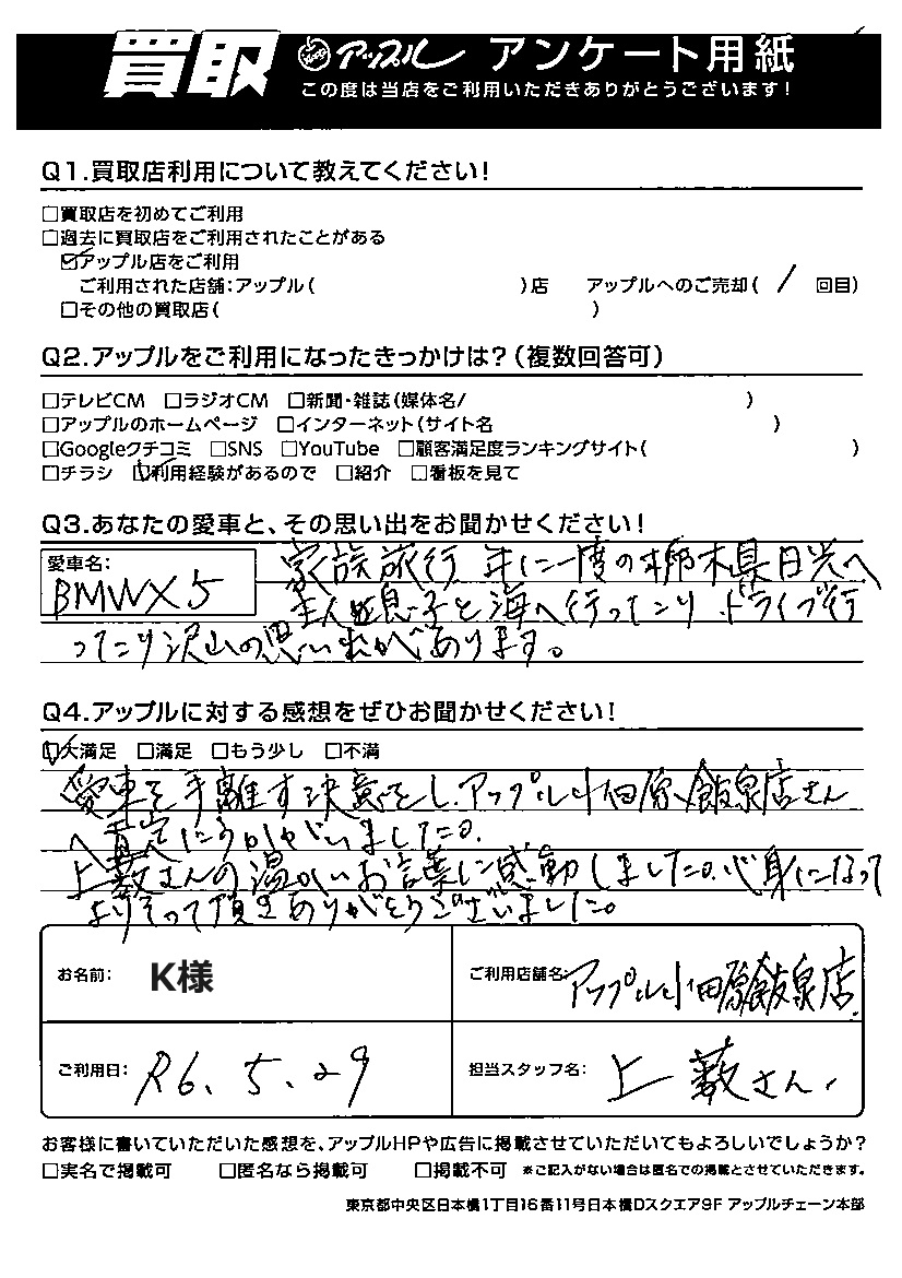 愛車を手離す決意をし、アップル小田原飯泉店さん