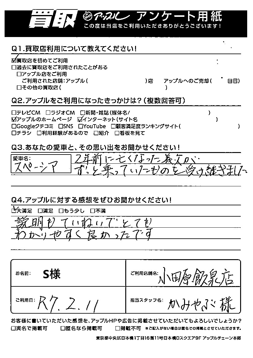A.愛車名:スペーシア 2年前になくなった義父が、すっと乗っていたものを受け継ぎました。