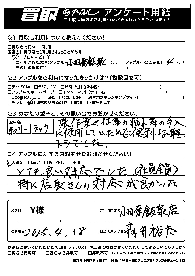 とても良い対応でした。(社員全員)特に店長さんの対応が良かった。