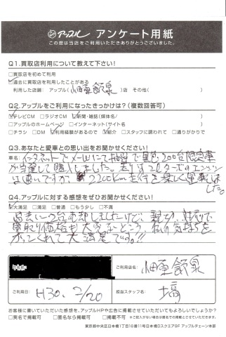 ☆K様いつもありがとうございます。金額はK様が愛着を持って大切に乗られているので私たちもいつも頑張らせて頂いております!