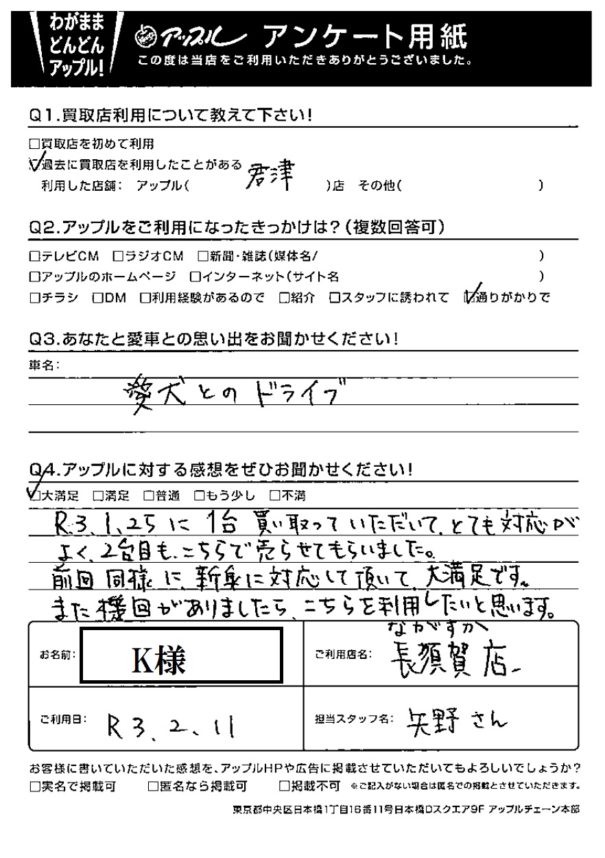 R3.1.25に1台買い取っていただいて、とても対応が
