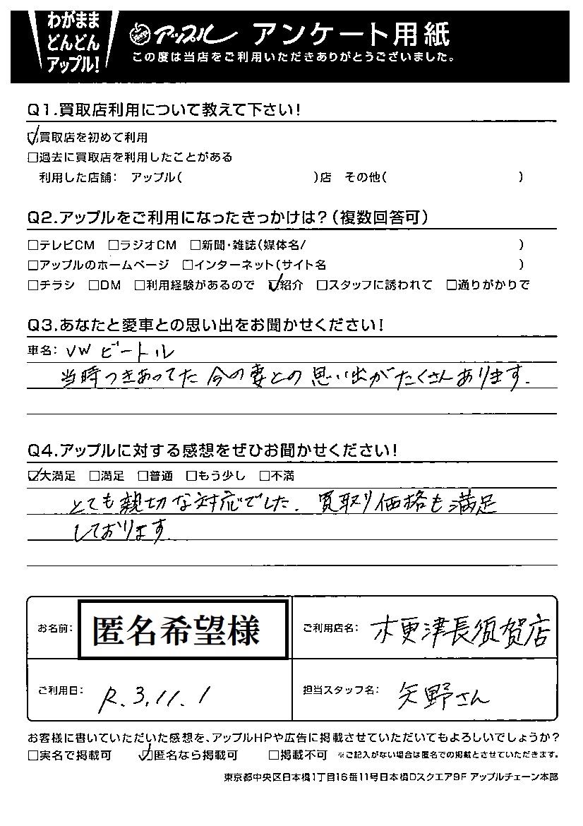 匿名希望様 車名:フォルクスワーゲン ビートル