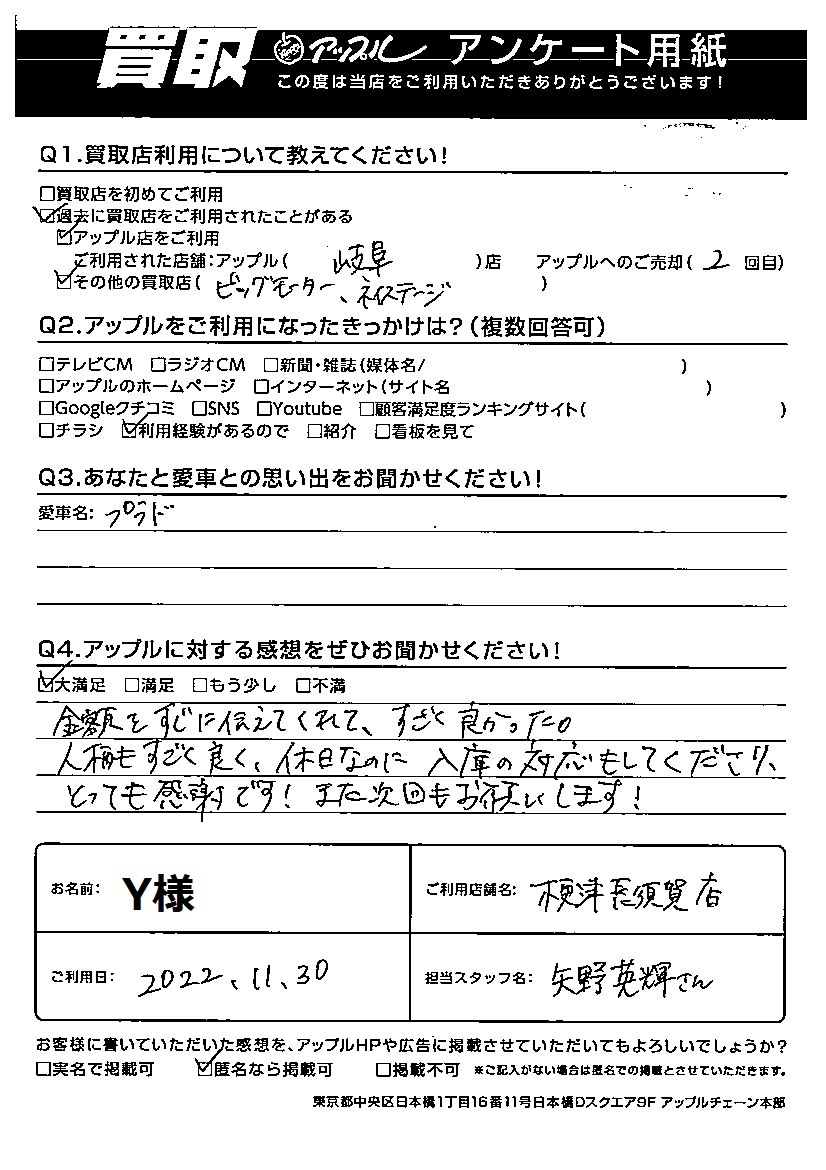 人柄もすごく良く、休日なのに入庫の対応もしてくださり、