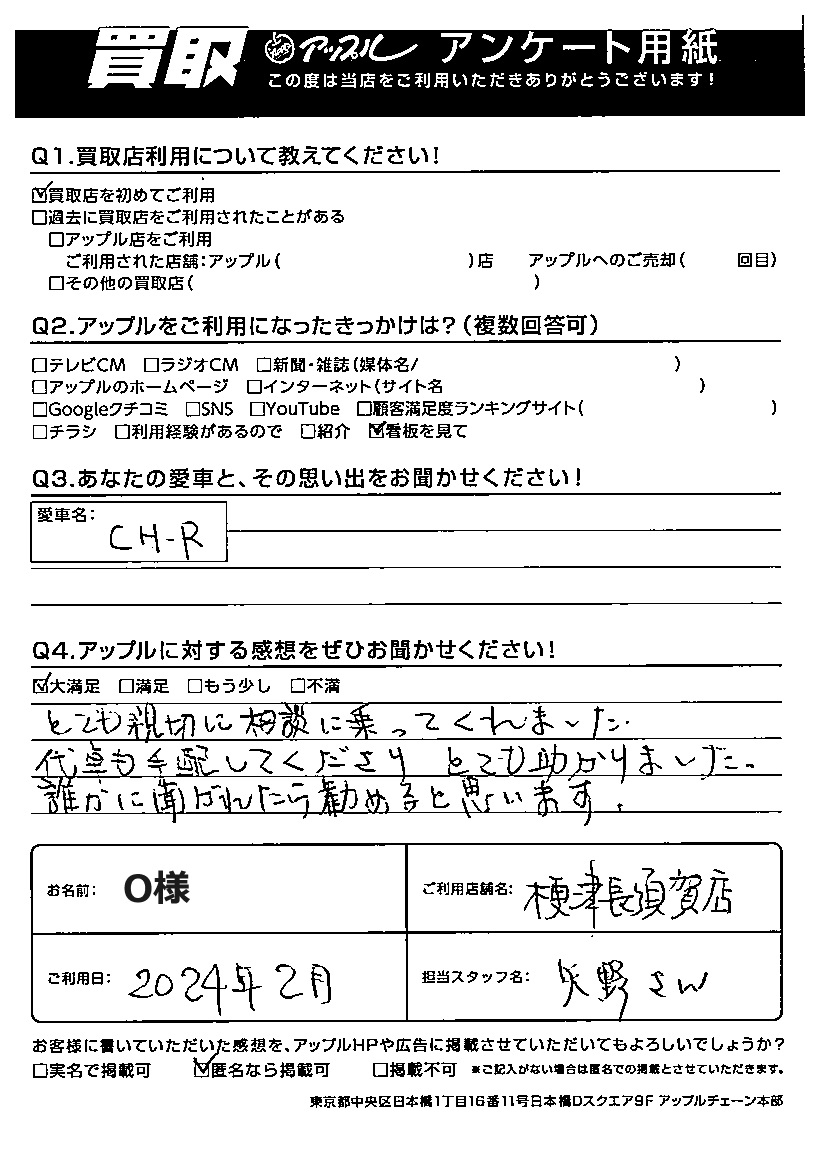 O 様 担当:矢野店長