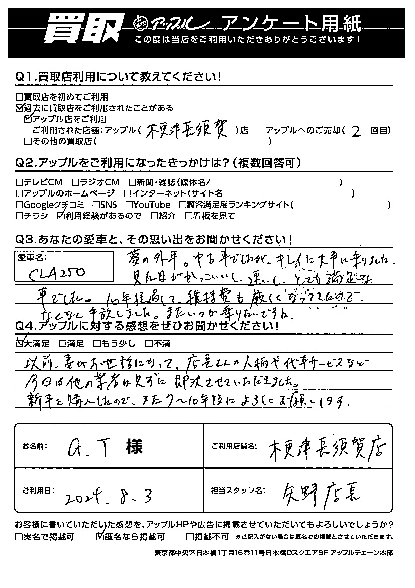 G.T様 車名:メルセデス・ベンツ CLAクラス