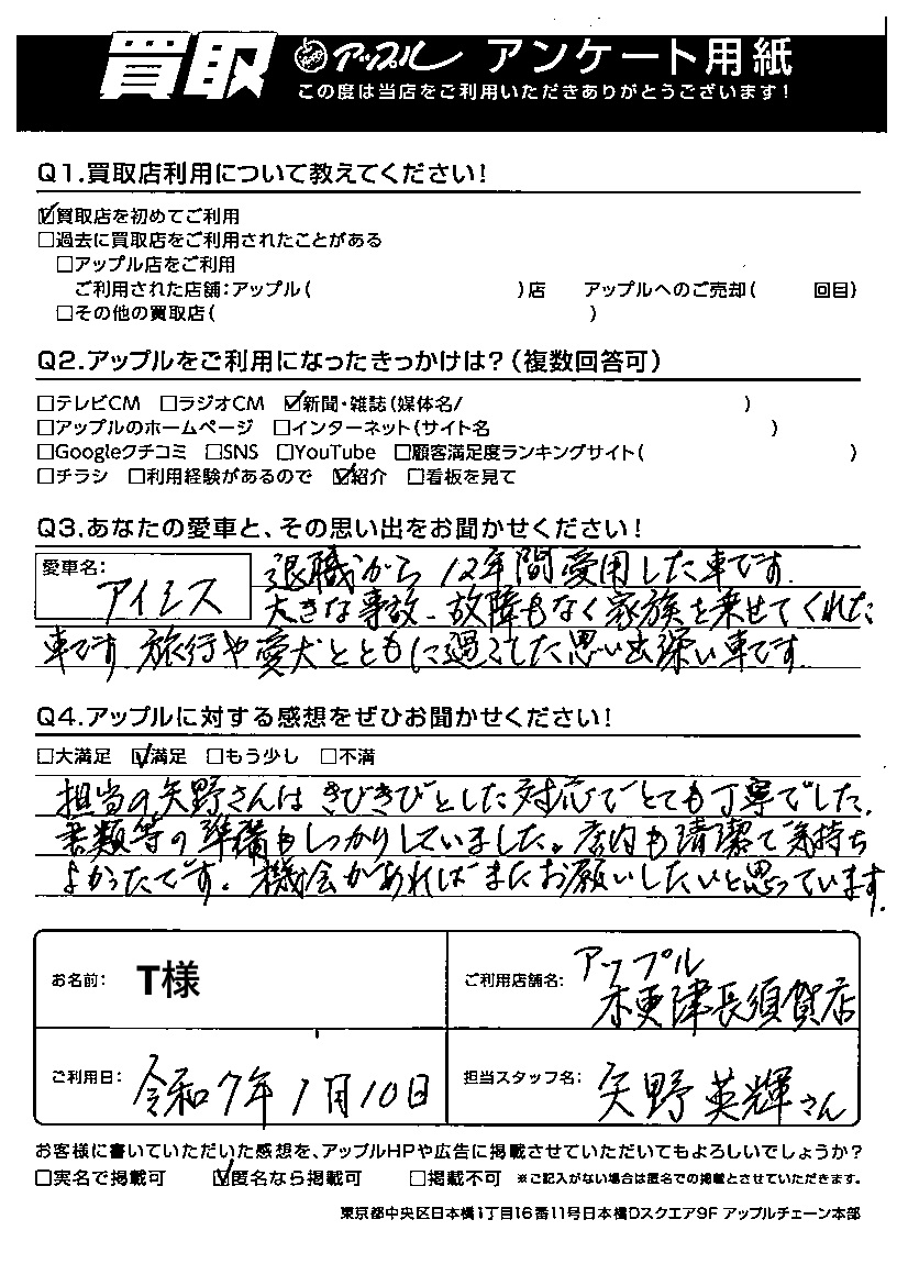 T 様 担当:矢野