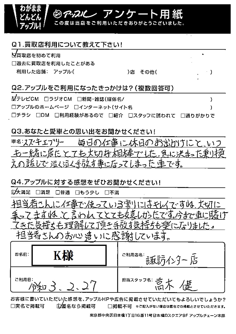 Q あなたと愛車との思い出をお聞かせください!