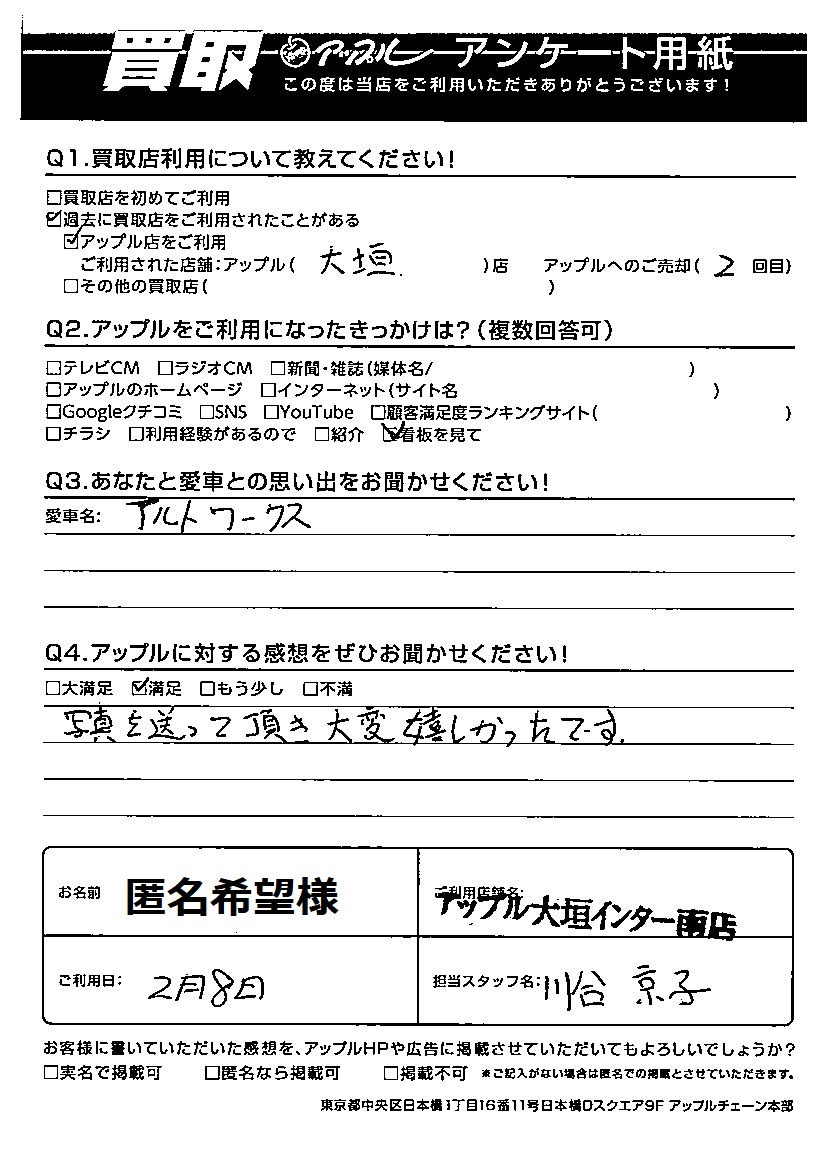 匿名希望様 車名:スズキ アルト (2015年12月以降のワークス含む)