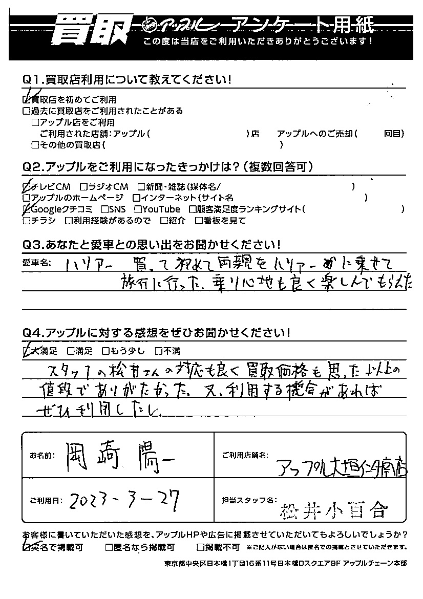 ご利用日:2023/3/27 岡崎 陽一 様
