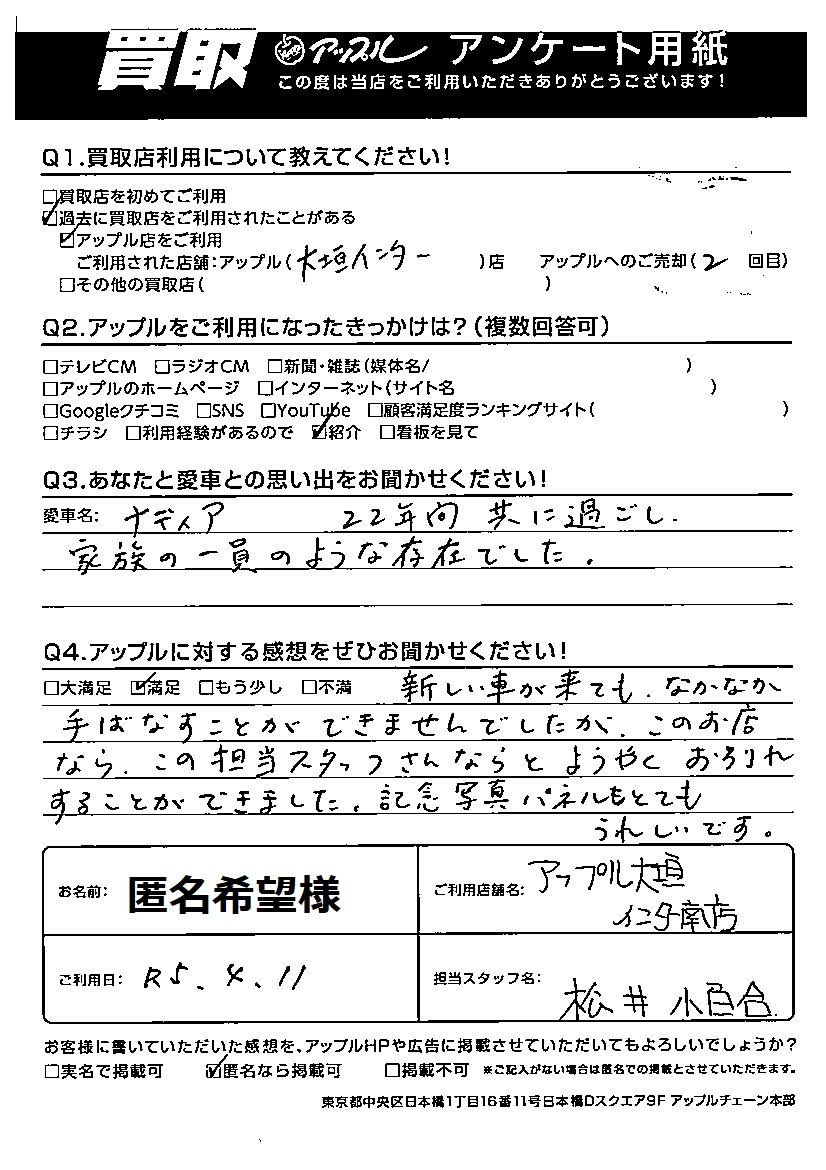 ご利用日:2023/4/11 匿名希望 様
