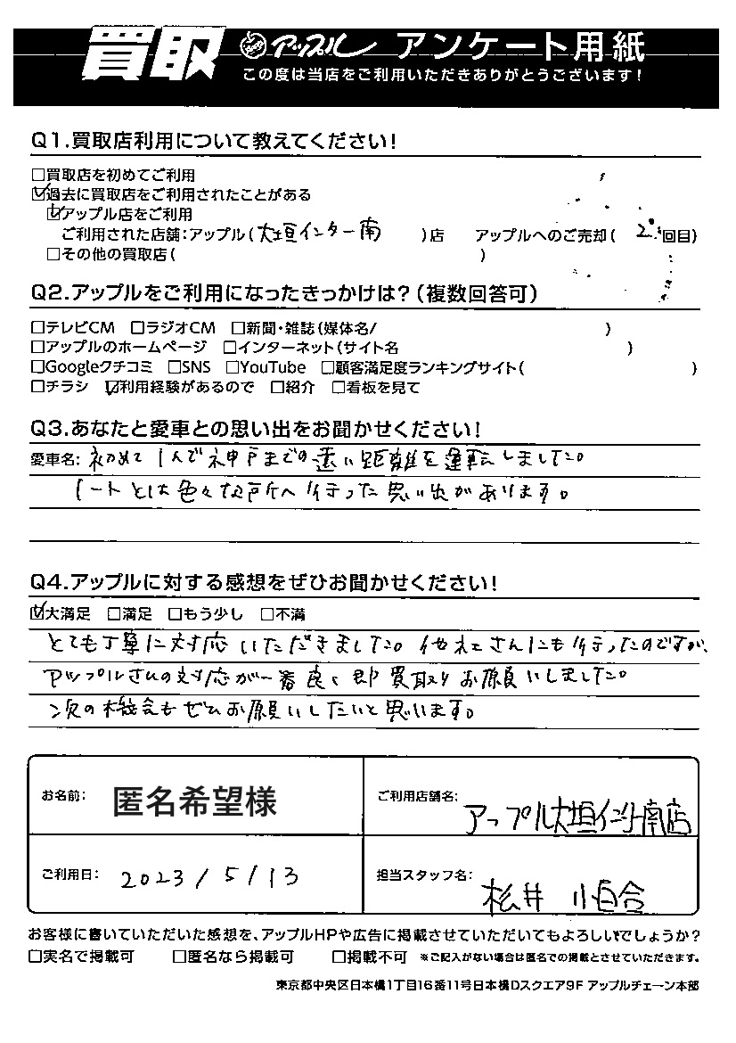 とても丁寧に対応いただきました。他社さんにも行ったのですが、