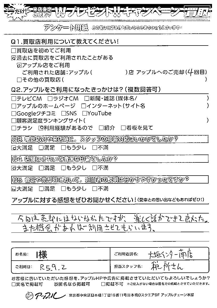 今回は売却にはならなかったですが、楽しく話ができて良かった。