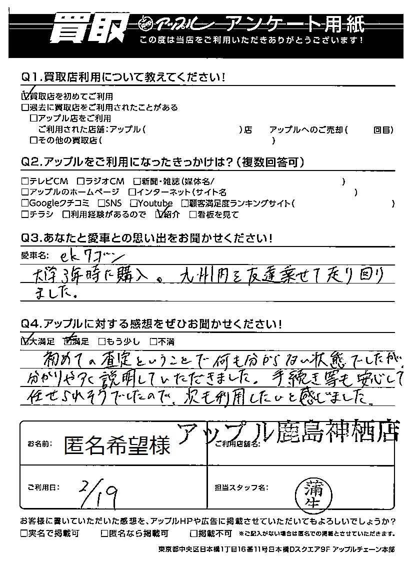 匿名希望様 車名:三菱 eKワゴン