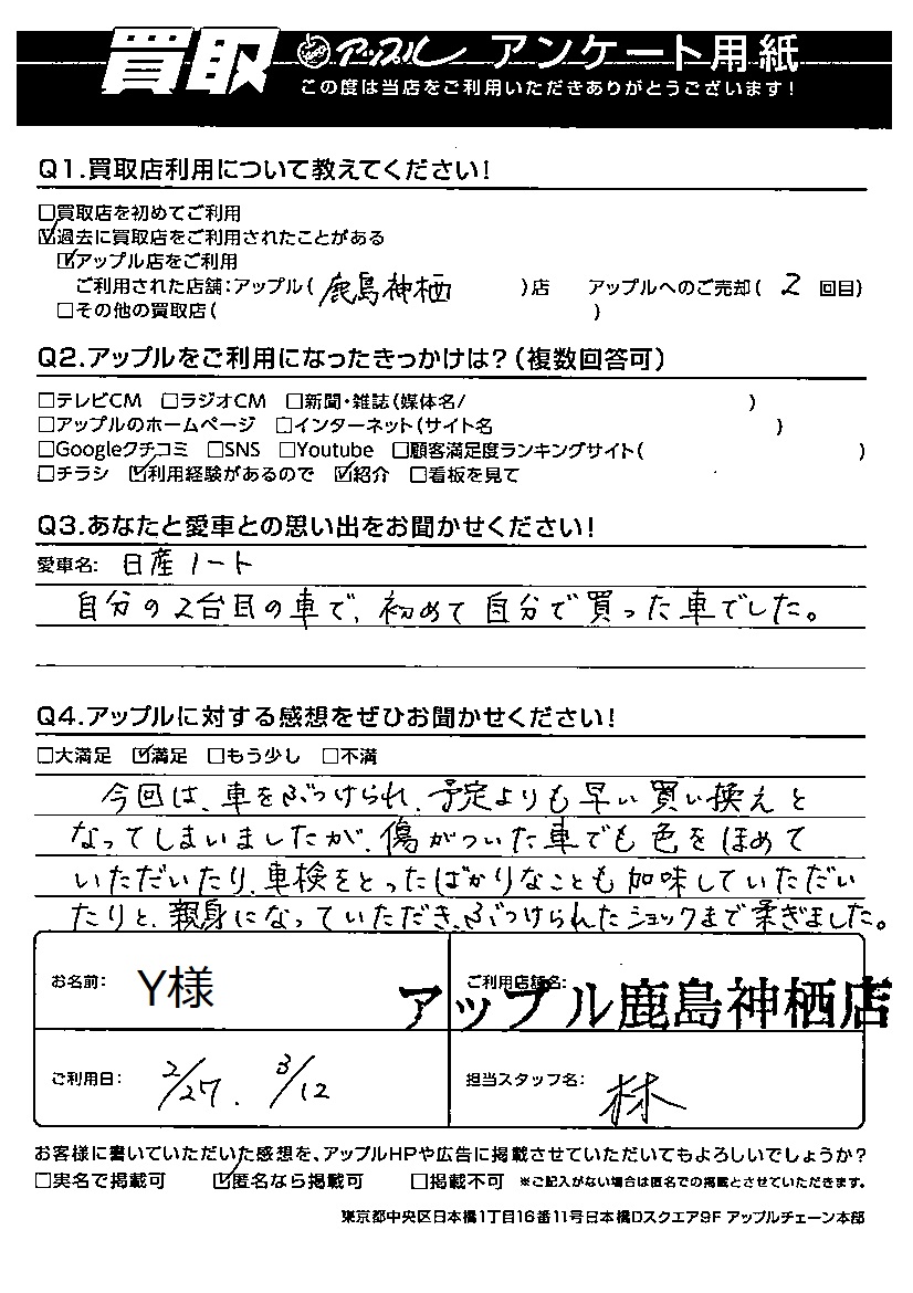 Y様 車名:日産 ノート