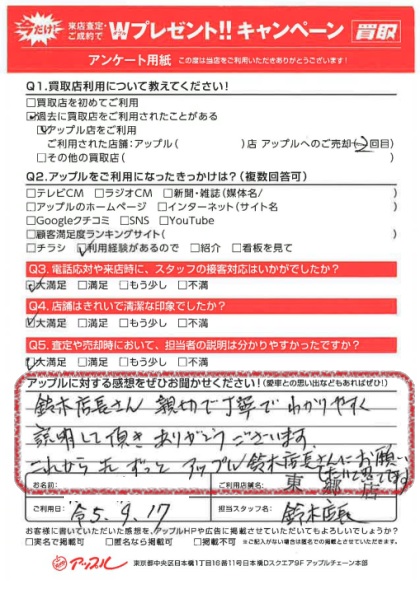 お車のご相談・ 査定だけでもOK! カンタン 入力 30秒 アップルがブランド買取始めました! お電話でも受付中! 受付時間9:30 ~ 18:30 0561-38-8448 お車のご相談・ 査定だけでもOK! カンタン 入力 30秒 アップルがブランド買取始めました! お電話でも受付中! 受付時間9:30 ~ 18:30 0561-38-8448 アップルがブランド買取始めました! お電話でも受付中! 受付時間9:30 ~ 18:30 0561-38-8448 店舗情報 在庫車 スタッフ紹介 ブログ お客様の声 キャンペーン 無料査定 click お客様の声 ご記入日: 2023/09/17 U様 車名:メルセデスAMG 満足度★★★★★鈴木店長さん、親切で丁寧でわかりやすく説明して頂き ありがとうございます。これから先ずっとアップル鈴木店長さんにお願いしたいと思います。 前へ 次へ お客様の声一覧を見る