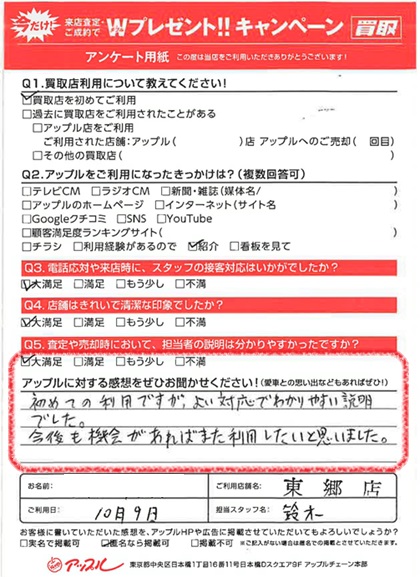 お車のご相談・ 査定だけでもOK! カンタン 入力 30秒 アップルがブランド買取始めました! お電話でも受付中! 受付時間9:30 ~ 18:30 0561-38-8448 お車のご相談・ 査定だけでもOK! カンタン 入力 30秒 アップルがブランド買取始めました! お電話でも受付中! 受付時間9:30 ~ 18:30 0561-38-8448 アップルがブランド買取始めました! お電話でも受付中! 受付時間9:30 ~ 18:30 0561-38-8448 店舗情報 在庫車 スタッフ紹介 ブログ お客様の声 キャンペーン 無料査定 click お客様の声 ご記入日: 2023/10/09 Y様 車名:スズキ ハスラー 満足度★★★★★初めての利用ですが、よい対応でわかりやすい説明でした。今後も機会があればまた利用したいと思いました。 前へ 次へ お客様の声一覧を見る