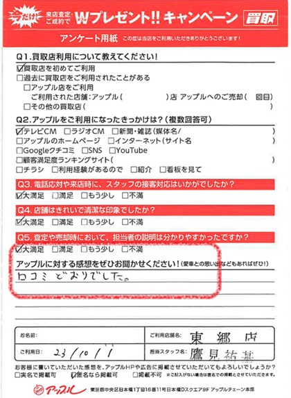 お車のご相談・ 査定だけでもOK! カンタン 入力 30秒 アップルがブランド買取始めました! お電話でも受付中! 受付時間9:30 ~ 18:30 0561-38-8448 お車のご相談・ 査定だけでもOK! カンタン 入力 30秒 アップルがブランド買取始めました! お電話でも受付中! 受付時間9:30 ~ 18:30 0561-38-8448 アップルがブランド買取始めました! お電話でも受付中! 受付時間9:30 ~ 18:30 0561-38-8448 店舗情報 在庫車 スタッフ紹介 ブログ お客様の声 キャンペーン 無料査定 click お客様の声 ご記入日: 2023/10/01 M様 車名:トヨタ カローラフィールダー フィールダー(カローラ) 満足度★★★★★口コミどおりでした。 前へ 次へ お客様の声一覧を見る
