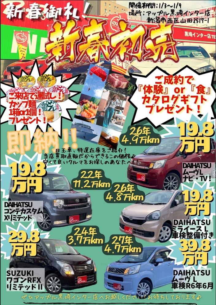 1月4日~1月31日まで、アップル黒埼インター店の初売り開催です!!