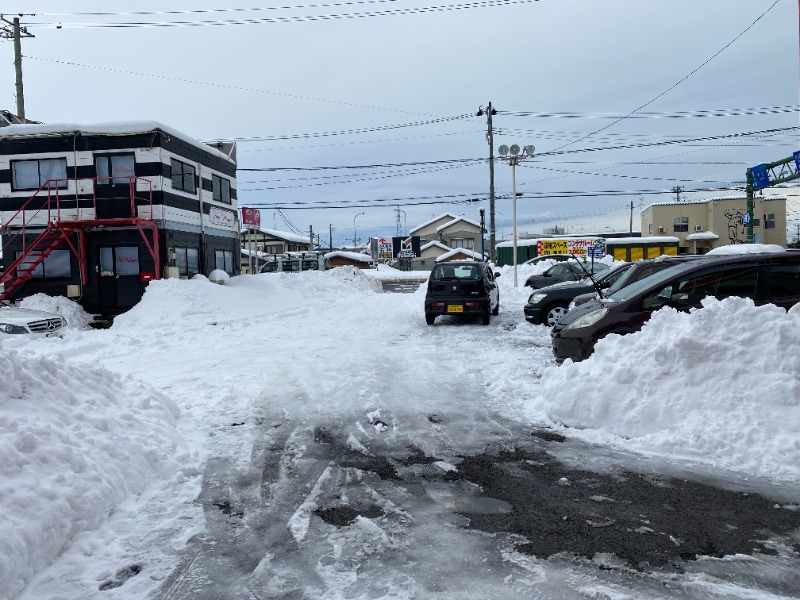 まだ誰の足跡もついてない、無傷の白さがキラキラ水晶みたいに光っている駐車場🚙