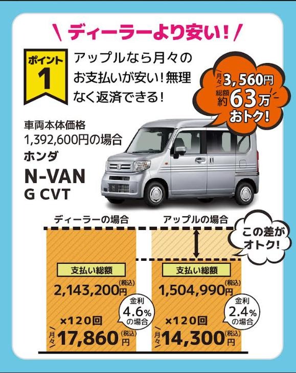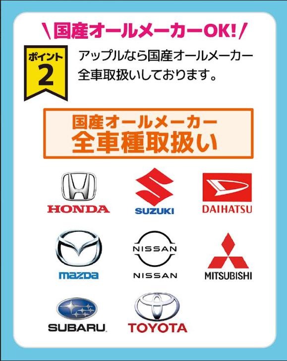 お車のご相談・ 査定だけでもOK! カンタン 入力 30秒 アップルがブランド買取始めました! お電話でも受付中! 受付時間10:00 ~ 18:30 0120-556-522 お車のご相談・ 査定だけでもOK! カンタン 入力 30秒 アップルがブランド買取始めました! お電話でも受付中! 受付時間10:00 ~ 18:30 0120-556-522 アップルがブランド買取始めました! お電話でも受付中! 受付時間10:00 ~ 18:30 0120-556-522 店舗情報 在庫車 スタッフ紹介 ブログ お客様の声 キャンペーン お得 無料査定 click [ 未分類 ] 2025/09/11 (木) 09:10 月々9,900円~?! 新車が安く買える★ こんにちは!アップル黒埼インター店より、新しい軽自動車の買い方のご紹介です!!なんとローン金利2.4%の低金利で120回払いが可能です!!頭金なし!ボーナスなし!!回数は120回まで!!!もちろんオールメーカー取り扱い可能♪銀行ローンや、ディーラーさんのローンと比べてみてください★詳しくはアップル黒埼インター店へお問い合わせくださいm(__)m 2025-09-11 9:10:45 新しい記事へ 古い記事へ 最新記事 新潟県初!? 全国200台限定車のロードスター★フェアレディZ 山口県S様へご納車でした㊗️オーナーさんは20代!! 選んだのは、“妥協なし”の一台。自動車税、もちますキャンペーン★え!そんな価格で買い取れるの?? 店舗情報に戻る 月別アーカイブ 2026年04月(4)2026年02月(3)2025年10月(1)2025年09月(1)2025年08月(3)2025年07月(1)2025年06月(5)2025年05月(4)2025年04月(5)2025年02月(6)2025年01月(6)2024年10月(12)2024年09月(10)2024年08月(4)2024年07月(7)2024年06月(3)2024年05月(1)2024年04月(2)2024年03月(2)2024年02月(2)2024年01月(1)2023年12月(1)2023年11月(1)2023年10月(2)2023年09月(2)2023年08月(3)2023年04月(1)2023年03月(1)2023年02月(1)2023年01月(1)2022年12月(1)2022年11月(1)2022年10月(1)2022年09月(4)2022年08月(5)2022年06月(1)2022年05月(2)2022年04月(3)2022年03月(3)2022年02月(2)2022年01月(3)2021年12月(3)2021年11月(3)2021年09月(1)2021年08月(3)2021年07月(3)2021年04月(1)2021年03月(1)2021年01月(1)2020年12月(2)2020年11月(2)2020年10月(3)2020年09月(3)2020年08月(5)2020年07月(4)2020年06月(4)2020年05月(5)2020年04月(6)2020年03月(2)2020年02月(2)2020年01月(1)2019年12月(1)2019年11月(1)2019年10月(1)2019年08月(1)2019年07月(2)2019年06月(1)2019年03月(2)2019年02月(1)2018年10月(1)2018年09月(1)2018年08月(1)2018年07月(4)2018年06月(1)2018年05月(1)2018年04月(3)2018年02月(3)2018年01月(1)2017年12月(2)2017年11月(1)2017年10月(2)2017年09月(4)2017年08月(7)2017年07月(7)2017年06月(3)2017年05月(3)2017年04月(5)2017年03月(5)2017年02月(5)2017年01月(8)2016年12月(2)2016年11月(1)2016年10月(7)2016年09月(2)2016年08月(4)2016年07月(7)2016年06月(2)2016年05月(6)2016年04月(1)2016年03月(1)2016年02月(7)