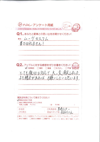 お車のご相談・ 査定だけでもOK! カンタン 入力 30秒 アップルがブランド買取始めました! お電話でも受付中! 受付時間10:00 ~ 18:30 0120-556-522 お車のご相談・ 査定だけでもOK! カンタン 入力 30秒 アップルがブランド買取始めました! お電話でも受付中! 受付時間10:00 ~ 18:30 0120-556-522 アップルがブランド買取始めました! お電話でも受付中! 受付時間10:00 ~ 18:30 0120-556-522 店舗情報 在庫車 スタッフ紹介 ブログ お客様の声 キャンペーン お得 無料査定 click お客様の声 ご記入日: 2014/02/14 S様 とても親切な対応で大っ変満足しました。また機会があればお願いしたいと思います。 前へ 次へ お客様の声一覧を見る