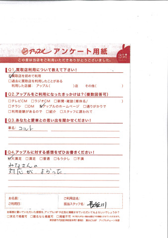 お車のご相談・ 査定だけでもOK! カンタン 入力 30秒 アップルがブランド買取始めました! お電話でも受付中! 受付時間10:00 ~ 18:30 0120-556-522 お車のご相談・ 査定だけでもOK! カンタン 入力 30秒 アップルがブランド買取始めました! お電話でも受付中! 受付時間10:00 ~ 18:30 0120-556-522 アップルがブランド買取始めました! お電話でも受付中! 受付時間10:00 ~ 18:30 0120-556-522 店舗情報 在庫車 スタッフ紹介 ブログ お客様の声 キャンペーン お得 無料査定 click お客様の声 ご記入日: 2014/03/25 K様 みなさんの対応がよかった。 前へ 次へ お客様の声一覧を見る