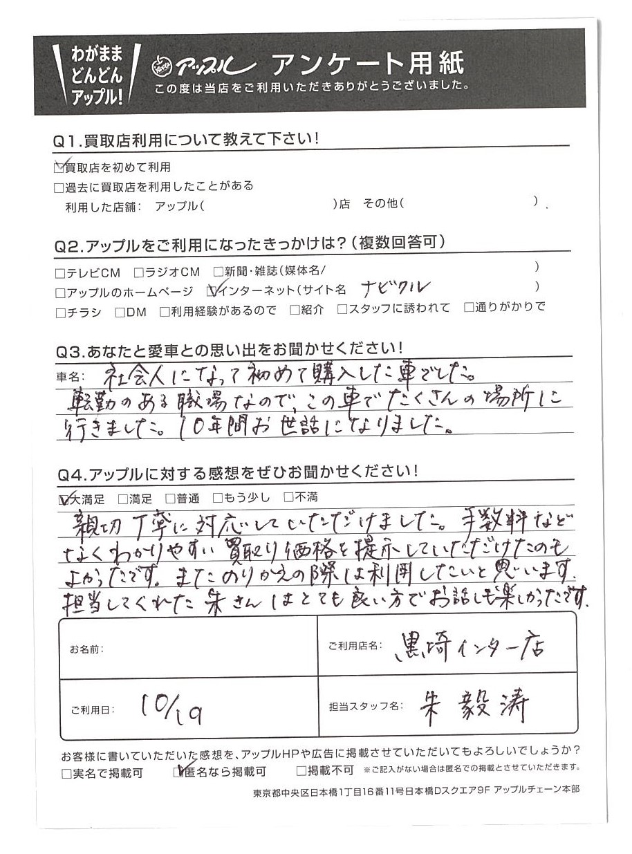 わかりやすい買取り金額を提示していただけたのもよかったです。