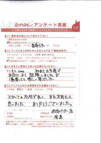 お車のご相談・ 査定だけでもOK! カンタン 入力 30秒 アップルがブランド買取始めました! お電話でも受付中! 受付時間10:00 ~ 18:30 0120-556-522 お車のご相談・ 査定だけでもOK! カンタン 入力 30秒 アップルがブランド買取始めました! お電話でも受付中! 受付時間10:00 ~ 18:30 0120-556-522 アップルがブランド買取始めました! お電話でも受付中! 受付時間10:00 ~ 18:30 0120-556-522 店舗情報 在庫車 スタッフ紹介 ブログ お客様の声 キャンペーン お得 無料査定 click お客様の声 ご記入日: 2014/10/10 加藤様 初めての外車で本当によく故障しましたが1番乗ってて楽しい車でした。スタッフの応対が良く、また次回も、と思いました。ありがとうございました。 前へ 次へ お客様の声一覧を見る