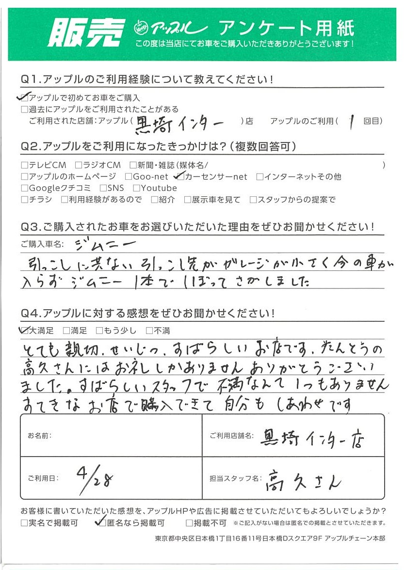新潟県新潟市 F様 車名:スズキ ジムニー