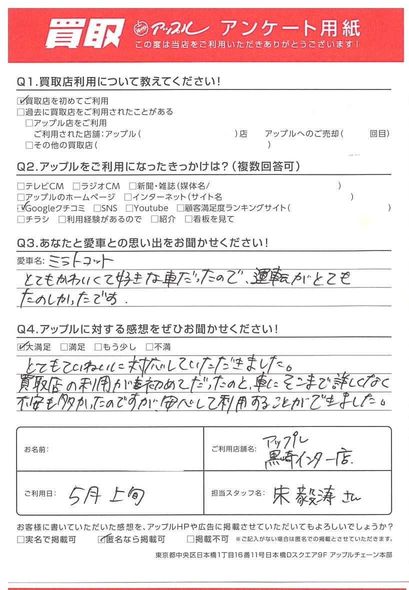 新潟県新潟市 W様 車名:ダイハツ ミラトコット