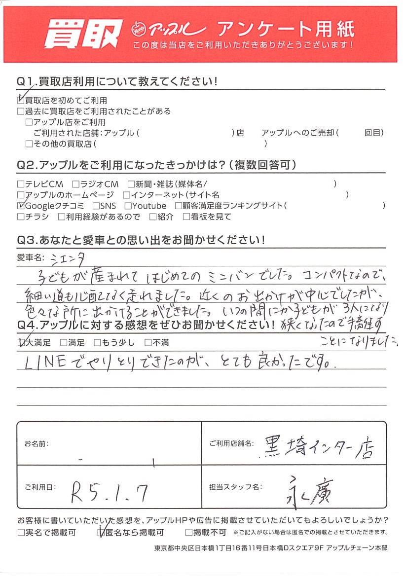 LINEでやりとりできたのが、とても良かったです。