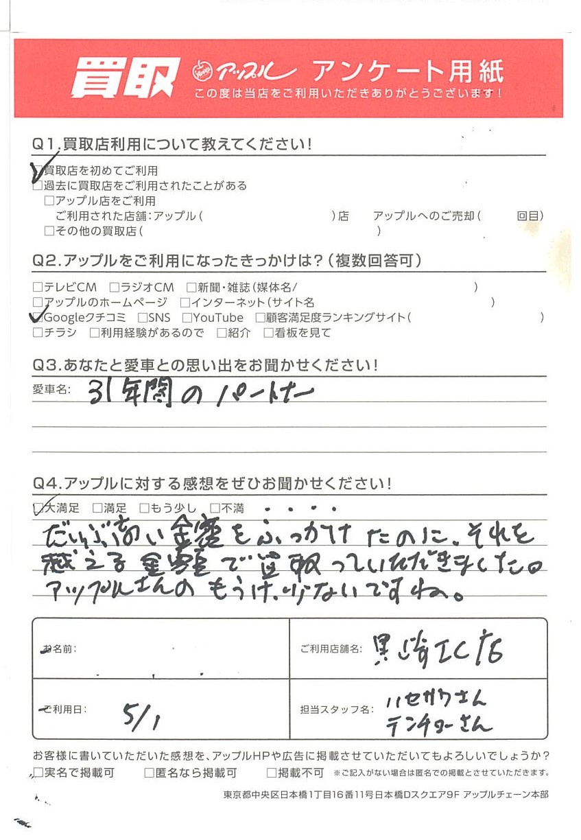 お車のご相談・ 査定だけでもOK! カンタン 入力 30秒 アップルがブランド買取始めました! お電話でも受付中! 受付時間10:00 ~ 18:30 0120-556-522 お車のご相談・ 査定だけでもOK! カンタン 入力 30秒 アップルがブランド買取始めました! お電話でも受付中! 受付時間10:00 ~ 18:30 0120-556-522 アップルがブランド買取始めました! お電話でも受付中! 受付時間10:00 ~ 18:30 0120-556-522 店舗情報 在庫車 スタッフ紹介 ブログ お客様の声 キャンペーン お得 無料査定 click お客様の声 ご記入日: 2023/05/01 W様 Q3.あなたと愛車との思い出をお聞かせください!31年間のパートナーQ4.アップルに対する感想をぜひお聞かせください!だいぶお高い金額をふっけたのに、それを超える金額で買取っていただきました。アップルさんのもうけ少ないですね。 前へ 次へ お客様の声一覧を見る